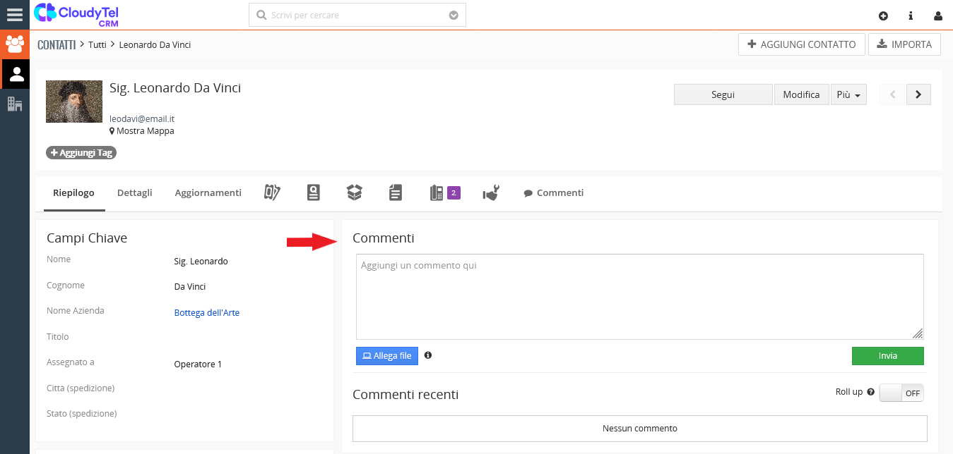 La sezione commenti è presente nella maggior parte dei moduli del MINI-CRM CloudyTel.