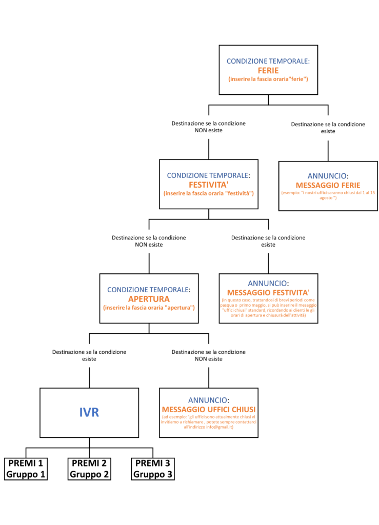 ATTENZIONE! La fascia oraria, l’IVR, i gruppi di chiamata e gli annunci devono essere appositamente creati nella proprie sezione del centralino.