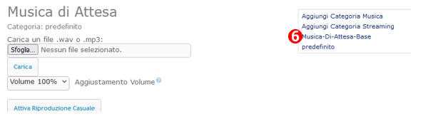 3. Da questa schermata sarà possibile anche selezionare il volume della musica di attesa