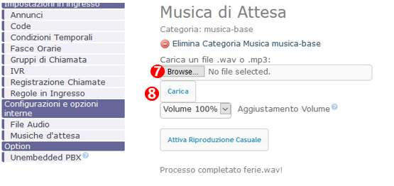 ATTENZIONE: Le chiamate attraverso le linee telefoniche mondiali supportano toni fino a 8000khz , se inserisci file di qualità diversa il risultato potrebbe non essre ottimale
